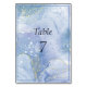 Jolie carte de table bleue, blanche et violette, marbrée avec veines de parties scintillant d'or.