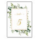 Tableau 5. Veuillez vérifier tous les numéros disponibles. | Ce numéro de tableau mariage est composé d'une aquarelle peinte, d'une végétation d'eucalyptus et de feuilles verts avec un cadre rectangulaire, du texte et du nombre de parties scintillant en faux or. Pour une personnalisation plus avancée de cette conception, cliquez sur le BOUTON OUTIL DESIGN BLEU ci-dessus !