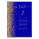 Le bord gauche de cette élégante carte de numéro de table mariage moderne comporte une bordure en parties scintillant d'or. Le mot "table" apparaît dans un script d'écriture manuscrite de couleur or sur un arrière - plan bleu royal. Ajoutez les noms de vos invités qui sont affectés à chaque table.