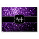 Carte de table Sparkly : Personnalisez avec votre initiale et votre nom. De belles parties scintillant violettes brillantes et girly glamour scintillent. Photo de flammes violettes pas de parties scintillant réelle !