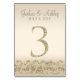 Cette carte de table moderne présente des accents de parties scintillant en faux or avec un arrière - plan de champagne. Parfait pour les mariages élégants et modernes. Les cartes de numéro de table vont jusqu'à 30.