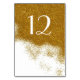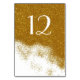Carte de numéro de table de mariage glamour faite en blanc, avec des graphiques de parties scintillant en or, sur la moitié supérieure de la carte et saupoudrer vers le bas. Personnalisez le numéro de chaque table à la réception.
