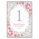 Pink silver Quinceanera celebration table number cards. Features, script font, silver butterflies, watercolor roses and tiara. Perfect for an elegant princess style glam celebration. Personalize with your own details. Printed Zazzle invitations or instant download digital printable template.