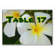 Carte de numéro de table de fleurs tropicales avec plumérias d'Hawaii. Jolie floraison jaune et blanche avec feuillage vert. Conception recto verso.
