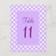 Motif à pois blanc sur violet clair avec place pour un numéro de table. Vous pouvez customiser et effacer le mot "Table" et centrer le numéro.