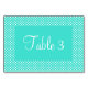 Motif à pois blanc turquoise et minuscule avec numéro de table. Vous pouvez customiser l'arrière - plan et la couleur de police, ainsi que le style et la taille de police.