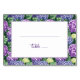 This charming wedding place card design features a delightful floral motif with vibrant hydrangeas in shades of purple and green, creating an elegant and natural ambiance. The central white space allows for customization, while the cursive typography adds a touch of sophistication. Perfect for a spring or summer wedding, this design exudes a fresh and romantic mood, inviting guests to partake in a beautifully curated celebration. Its customizable nature ensures it can be tailored to fit any special occasion seamlessly.