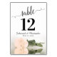 Ces belles cartes de numéro de table faciliteront la recherche de sièges à votre réception de mariage. Dispose d'un design magnifique avec la calligraphie en dentelle et un seul rose couleur pêche sépia sur son côté avec vagues ondulées et réflexions. Il y a de la place pour les noms du couple et la date du mariage.