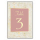 Simple, élégant, moderne, numéro de table ivoire beige et rose poussiéreuse avec dentelle florale dorée sophistiquée.