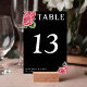 Numéro de table de réception de mariage noir avec roses rouges. Personnalisez-le avec les détails de votre événement. Changez le numéro de chaque table que vous avez.