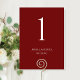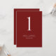 Aidez vos invités à trouver leur table avec cet élégant numéro de table rouge bordeaux moderne. Cartes recto verso. Libérez de l'espace tout autour en vous donnant la liberté d'utiliser un porte-table ou un cadre. Attrayant arrière - plan rouge bordeaux et texte blanc. Plusieurs options de couleur. Cartes et menus assortis disponibles. Une partie de notre collection "Burgundy Red and Berry Mariage and Event Products" avec une variété de produits de coordination disponibles.