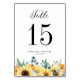 Ajoutez un accent de chute rustique à votre événement avec ces cartes personnalisables de numéros de table. Il présente des illustrations d'aquarelle de citrouille, de tournesols, de coton et d'eucalyptus feuille. Personnalisez en ajoutant des noms, des dates et des numéros de table. Cette carte de numéro de table citrouille est parfaite pour les mariages de automne, douches nuptiales, baby showers et bien plus encore.