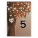 Vintage automne numéros de table mariage avec un arbre rustique avec des feuilles oranges brûlés, un coeur sculpté avec les initiales des couples, des lumières à cordes, et votre numéro de table.