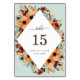 Belle carte de numéro de table mariage avec fleurs d'aquarelle et feuillage sur un arrière - plan vert menthe. Parfait pour les rustiques ou les mariage de automne.