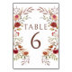 Numéro De Table Rustique Bourgogne Automne Floral Mariage Numéros