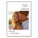 Ajoutez une touche personnelle à votre réception de mariage avec ce numéro de table photo moderne minimaliste personnalisé. Ajoutez votre propre photo (photo fiançailles, photos de voyage, photos de l'école secondaire, photos d'enfance ou de couple) à chaque carte de table et nommez-la avec un numéro ou une destination de voyage pour une touche finale spéciale. Insérez vos noms dans la police serif avec accent de calligraphie. DOUBLE CÔTÉ Coordonné avec Calligraphie MODERNE Script PHOTO MARIAGE SUITE