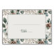 This table number features a serene botanical design with lush green leaves and pinecones, creating an elegant and natural aesthetic. The color palette is dominated by soft greens and earthy tones, evoking a calming and inviting atmosphere perfect for weddings or formal gatherings. The layout includes a clean white center bordered by the intricate foliage pattern, allowing for easy customization of your event details. The typography is simple yet stylish, enhancing the overall sophisticated look of this decorative piece. Ideal for adding a touch of nature to any celebration, this table number combines beauty and functionality seamlessly.
