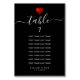 Numéro De Table Simple moderne Red Heart Mariage noir