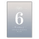 Simple Ombre Gardenia Blanc & Bleu Dusty Numéro De Table De Dîner De La Réception De Mariage. Cette Table Card chic et moderne est simple classique et élégant avec un dégradé d'ombre subtil et une jolie police de calligraphie de script signature avec queues. Montré dans la nouvelle Colorway. Disponible en plusieurs options de couleur, ou n'hésitez pas à modifier les couleurs à partir de l'éditeur (cliquez sur customiser plus loin lors de la personnalisation). Pour en savoir plus, recherchez les collections mariages 2022 de Chic Paperie pour voir toutes les tendances design et couleurs mariages de cette année.
