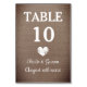 Cosy burlap thème mariage fête de mariage Table Numéro cartes. modèle vintage au coeur défraîchi. Partie de la collection abordable avec thème correspondant. Imprimé avec les noms de la mariée et du marié.