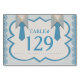 Les cartes de numéro de table Cool de notre collection originale de mariage gay rendent hommage à la chemise rayée bleue Oxford toujours populaire, aux montures des années 1890, aux formes d'appel et à l'illusion 3D des cols, cols de chemise et cravates de 2 messieurs. Personnalisez le champ numérique - ou effacez-le et remplissez-le à la main lorsque les tables sont installées. #zazzlemade