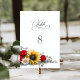 Numéro De Table Sunflower and Red Rose Floral Wedding