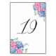 Numéro de Table 19 | Complétez votre décor de table avec ces numéros de table élégants. Ils présentent des bouquets d'hydrangeas à l'aquarelle rose et bleu et une typographie fantaisiste. Ce numéro de table floral est parfait pour les mariages de printemps et d'hiver, les douches de mariée, les douches de bébé et bien plus encore. Des articles assortis sont disponibles.