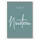 Numéro De Table Table à écriture manuscrite sarcelle poussiéreuse