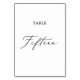 Ce délicat tableau de calligraphie noire quinze numéro de table est parfait pour un mariage moderne. Le design minimaliste romantique présente une belle et élégante typographie noire sur un arrière - plan blanc au look épuré et sobre. La carte s'imprime à l'avant et à l'arrière (double face). Les autres numéros de tableau de la collection sont vendus séparément.