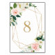 Numéro de table Fleurs de printemps à l'aquarelle géométrique | Numéro de table élégant et féminin avec illustrations à l'aquarelle de roses et de pivoines blanches, pêche et roses, accents de feuillage et cadre géométrique en faux feuille. Ce numéro de table floral est parfait pour les événements printaniers et de jardin.