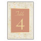 Simple, élégant, moderne, numéro de table ivoire beige et terre cuite avec une délicate dentelle florale dorée.