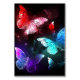 Trois papillons lumineux, rouges, violets, verts, texturés, nocturnes sur arrière - plan noir lumineux.