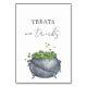 Vous cherchez ce thème parfait inspiré par l'halloween pour votre baby shower? Ne cherchez pas plus loin que notre design moderne minimaliste "un bébé est en train de brasser". Cette adorable enseigne de table d'affichage de baby shower dispose d'un caldron aquarelle et d'une belle combinaison de serif et de typographie cursive manuscrite qui dit "TREATS, pas de tours" pour la table de faveur parfaite.