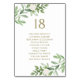 Ajoutez un bel accent botanique à votre paysage de table avec la carte de numéros de table de verdure personnalisable. Il présente des illustrations aquarelles de fleurs blanches et de verdure. Personnalisez cette carte verte en ajoutant vos propres détails. Ces numéros de table verdoyants sont parfaits pour tout événement.