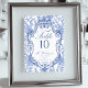 Numéro De Table Wedding Crest Delft Blue Floral Elegant Script