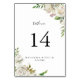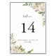 Ce numéro de table blanc à mariages fleuris d'hiver est parfait pour un mariage moderne. Le design présente de belles pivoines blanches dessinées à la main et entassées dans de beaux bouquets aux bourgeons bordeaux et aux feuilles verts. Il s'agit d'un numéro de table recto-verso. Ajoutez chaque numéro de table dont vous avez besoin à votre panier individuellement.