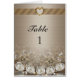 Carte de numéro de table double usage avec diamants et or ton satin-look arrière - plan. le dos est imprimé avec les mots, "S'il vous plaît passer cette carte autour de la table et laisser un message pour l'invité d'honneur." Après la fête, ces cartes peuvent être gardées comme un memento signé par tous vos invités.