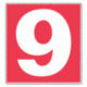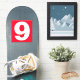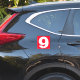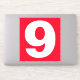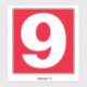 Numéro Neuf. Numéro 9 Numéro individuel comme autocollant. Rouge et blanc. 8 x 8 pouces