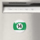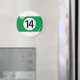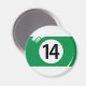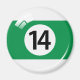 Aimant frigo avec un nombre vert et blanc quatorze bille de billard avec réflexion. Parfait cadeau de noël ou d'anniversaire pour les joueurs de billard. Les seize boules sont disponibles sur dessous de verre, autocollants, magnets, porte - clés et ornements.