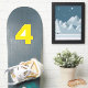 Numéro quatre. Numéro 4 Numéro individuel comme autocollant. Or et blanc. 8 x 8 pouces