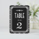 Ces numéros de table présentent une palette de couleurs noir et blanc, un cadre géométrique, des motifs géométriques et d'autres détails stylistiques tous inspirés de l'Art déco et des années folles. Vous pouvez personnaliser les champs de texte d'exemple à votre goût.
