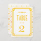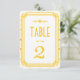 Ces numéros de table présentent une palette de couleurs blanche et or, un cadre géométrique, des motifs géométriques et d'autres détails stylistiques inspirés de l'Art Déco et des années folles. Vous pouvez personnaliser les champs de texte d'exemple à votre goût.