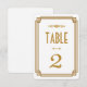 Ces numéros de table présentent une palette de couleurs blanche et or, un cadre géométrique et d'autres détails stylistiques inspirés de l'Art Déco et des années folles. Vous pouvez personnaliser les champs de texte d'exemple à votre goût.