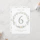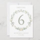 Vert élégante aquarelle botanique fleurs blanches avec des feuilles d'eucalyptus pour les numéros de table de mariage de jardin rustique.