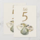 Numéros de table de réception de mariage peints à l'aquarelle en double face avec des coquillages. Parfait pour un mariage sur la plage ou au bord de l'océan. Personnalisez avec vos propres détails. Changez simplement le numéro pour chaque numéro dont vous avez besoin et ajoutez-les un à un à votre panier. Des remises de quantité peuvent s'appliquer une fois que vous avez ajouté tous les articles à votre panier. Conception et peinture originale à l'aquarelle par Sarah Trett pour www.mylittleedenweddings.com sur zazzle.