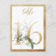 Belle carte de numéro de table avec un motif botanique - une illustration aquarelle de feuillage vert et numéros à effet doré. Table 16. Veuillez vérifier tous les numéros disponibles