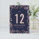 Élégant, moderne et chic motif floral bleu marine et faux or rose tendance dessiné à la main, carte de table de mariage. Ce design classique et sophistiqué est parfait pour la réception de mariage classe, élégante et tendance. Personnalisez avec des numéros de table personnalisés sur le devant ou ajoutez votre propre message personnel en cliquant sur le bouton "personnalisez-le". Ajoutez également votre propre monogramme initial personnalisé au dos. Conception d'impression photo.