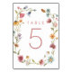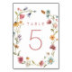Panneau de numéros de table floraux pour fête de fleurs sauvages printanières