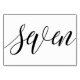 Tableau Numéro 7 : Cette carte de numéro de table de calligraphie luxueuse et élégante est placée dans un noir riche, mais vous pouvez la changer à n'importe quelle couleur que vous voulez en changeant la couleur arrière - plan. **COMMENT CHANGER LA COULEUR DE CONCEPTION (Le mot "RSVP")** 1) Cliquez sur le bouton "Personnaliser". 2) Cliquez sur le lien "ClICK POUR CUSTOMISER PLUS LOIN" en bas. Vous aurez alors la possibilité de changer votre "COULEUR ARRIÈRE - PLAN" en votre couleur mariage. Si vous changez votre couleur de design, n'oubliez pas de changer de couleur au dos aussi : )