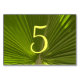 Personnalisez ces numéros de table Palmier Tropical naturels et créez une carte différente pour chaque table lors de votre réception de mariage de destination insulaire, de votre douche de mariée ou de votre fête de plage. Ces numéros de table personnalisés présentent une photographie de la nature peinte numériquement d'une fronde ou d'une feuille de palmier verte.